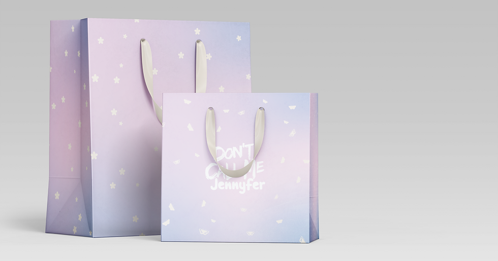 Réflexion stratégique pour des campagnes de branding / opérations marketing, et créations de contenus print tels que des packagings, bandeaux et divers éléments décoratifs des magasins de la marque de retail pour adolescents Don't Call Me Jennyfer.